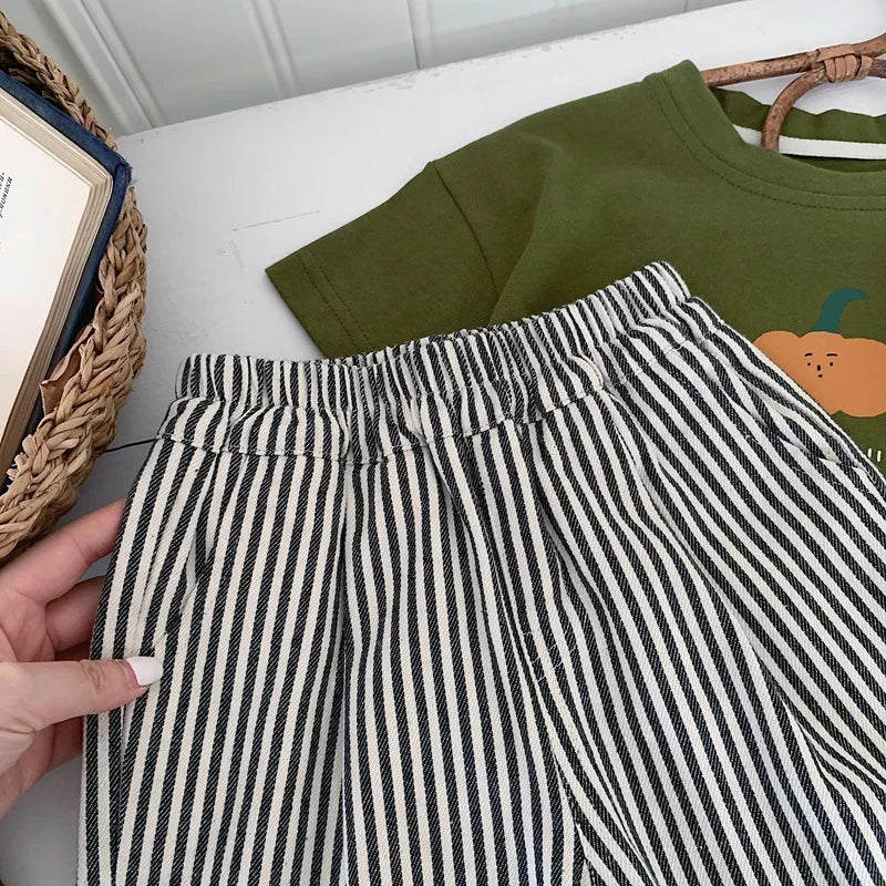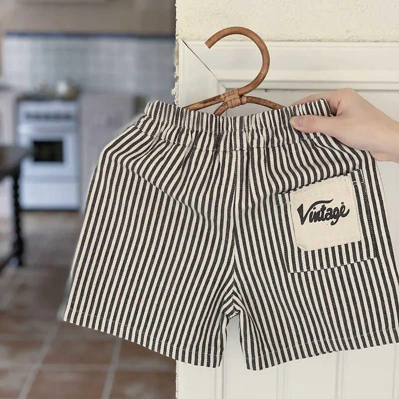 2024 Summer Kid Sports Shorts Boy Girl Striped Short Pants Loose Children Mid Trousers Fashion Toddler Casual Pants Baby Clothes