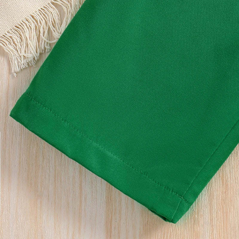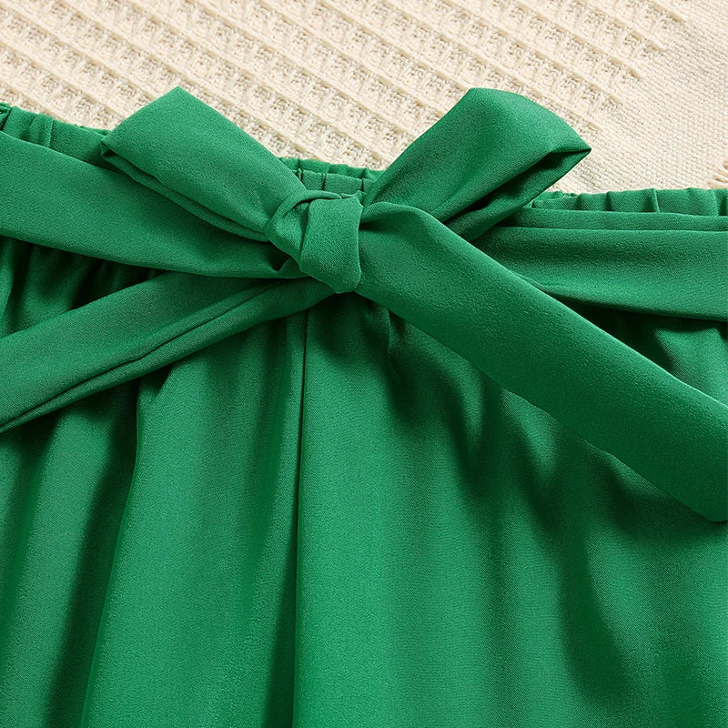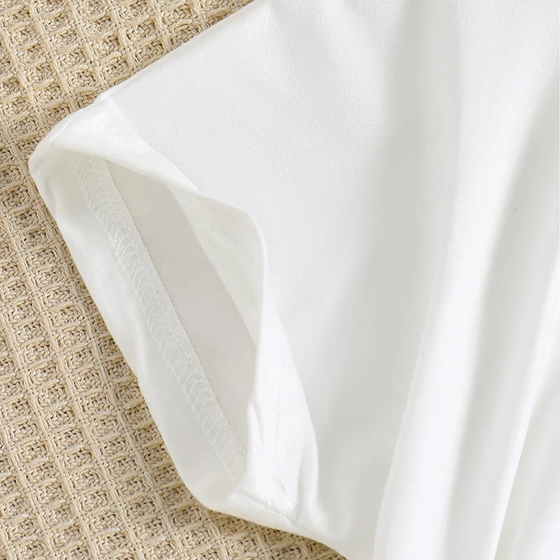 2pcs Girl Fashion Minimalist Cartoon Print Breathable round Neck Knit Top Summer Thin Wide Leg Pants Set
