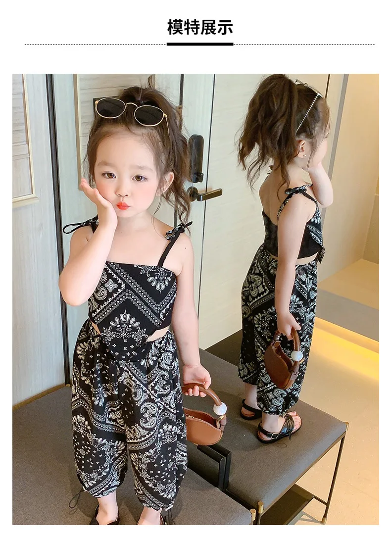 3-6Years Summer Suit Thin Girls Suit Suspender Mosquito-proof Pants Two Pieces of Cute Girl Children's Clothes