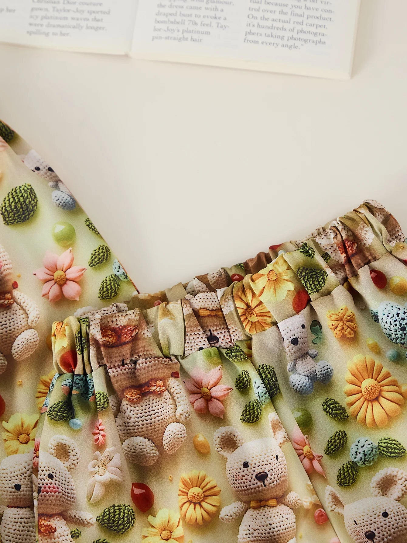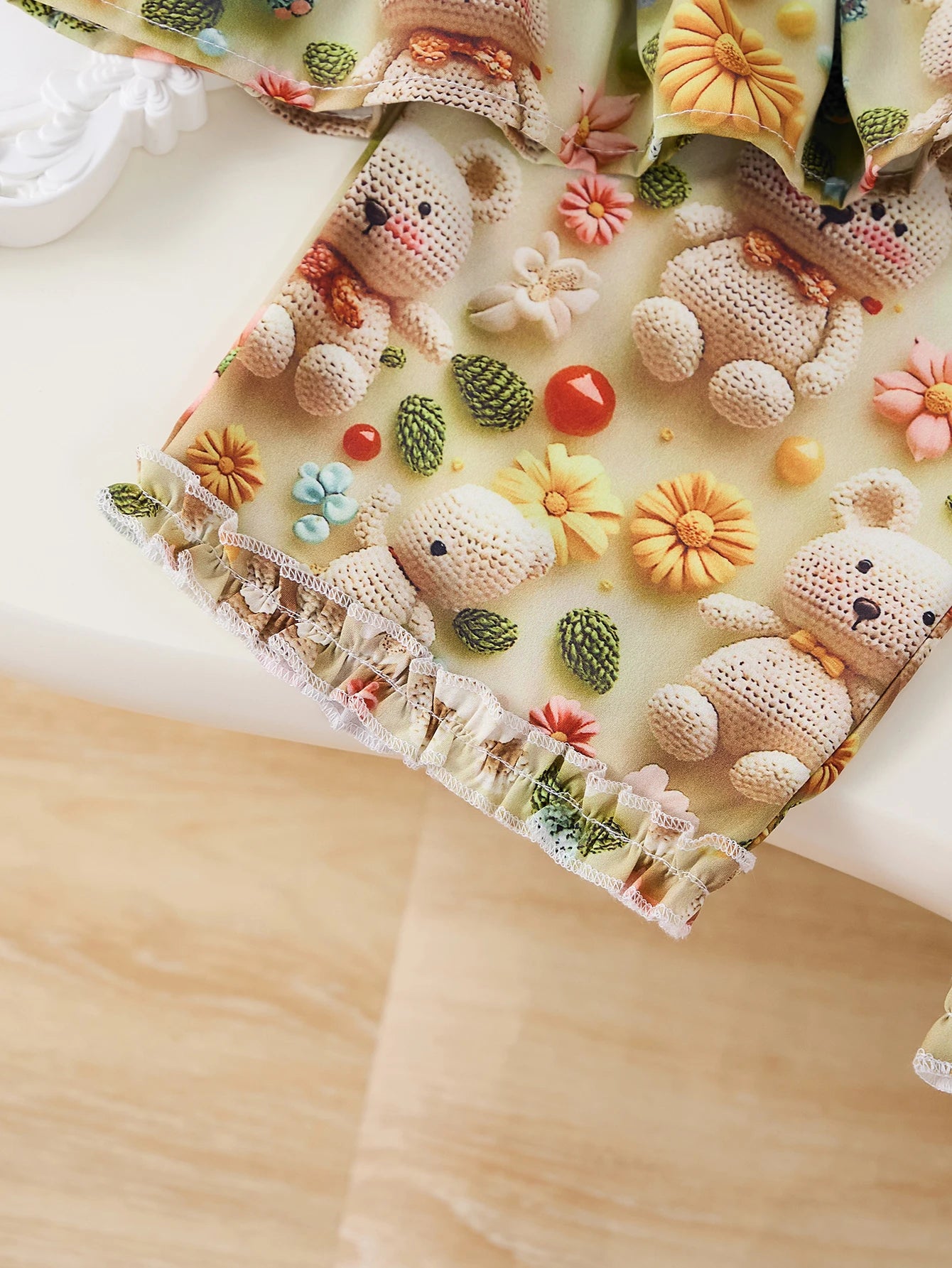 Children's Clothing Sets Blue Plaid Floral Print Sleeveless Top + Wide Leg Pants + Shorts 3 Pcs Sets Kids Clothes for Girls