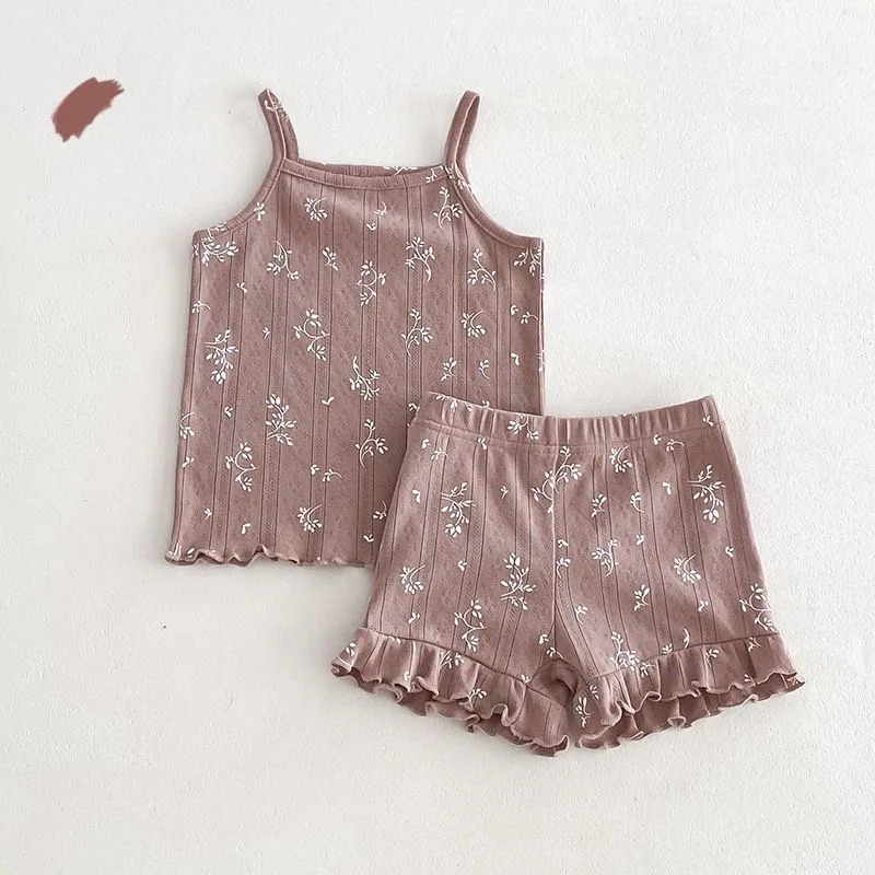 Fashion Baby Girl Cotton Floral Print Clothes Set Strap Vest+Shorts 2PCS Infant Toddler Child Summer Homesuit Baby Clothes 1-10Y