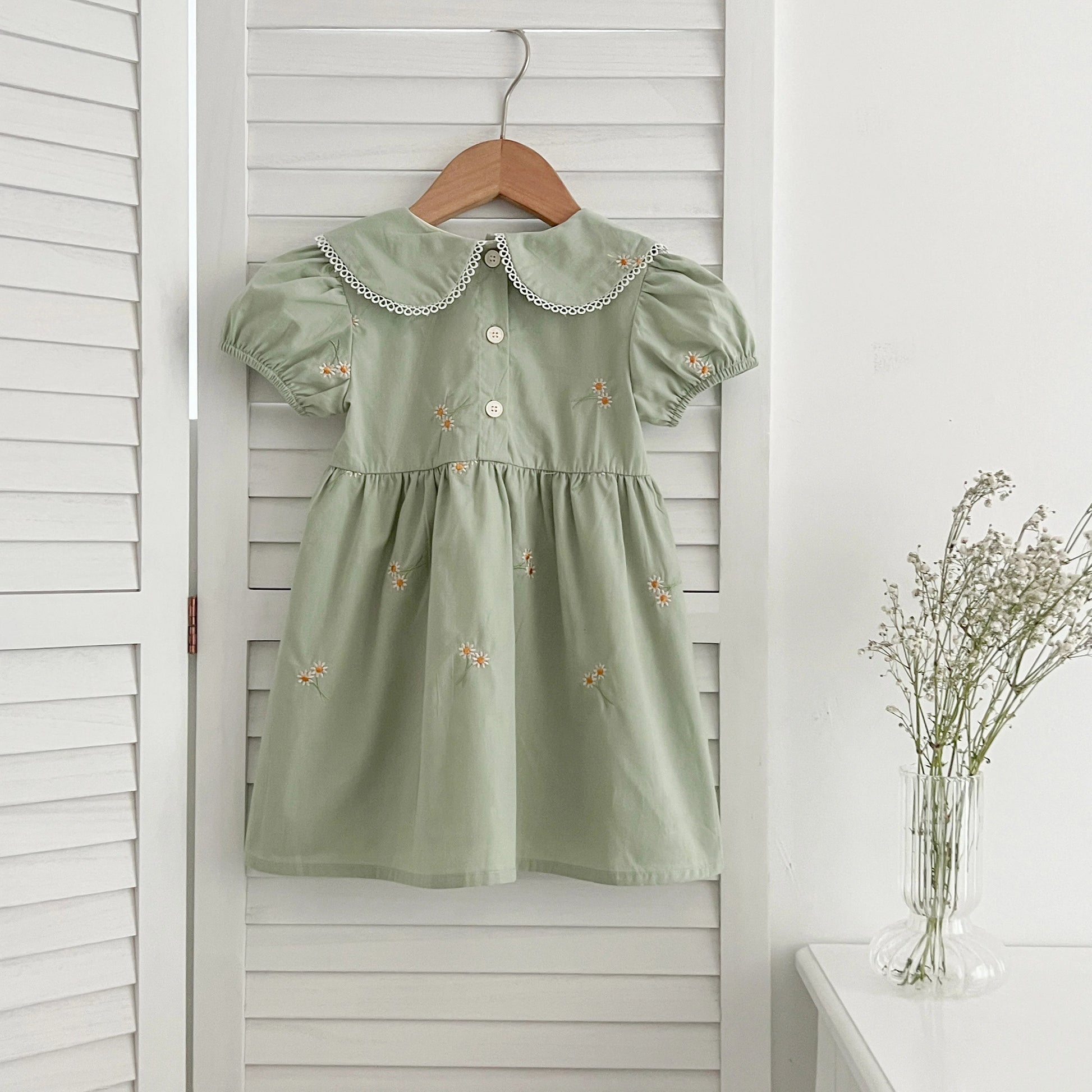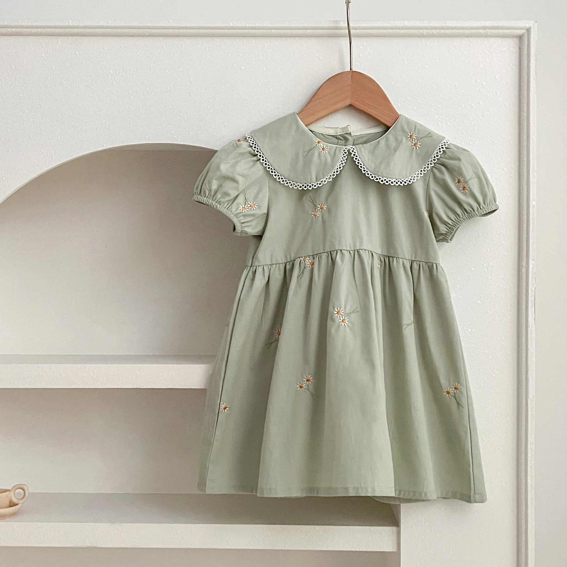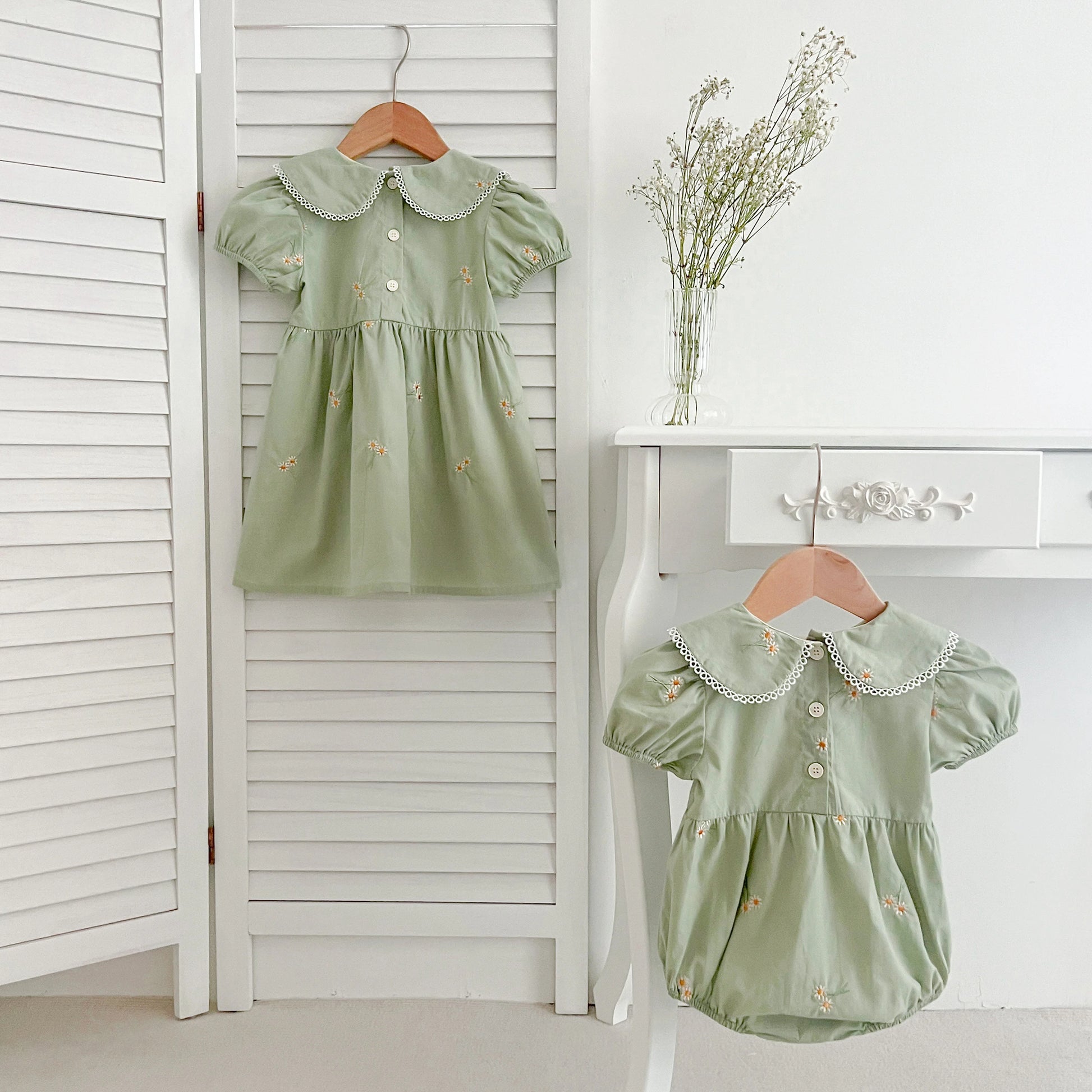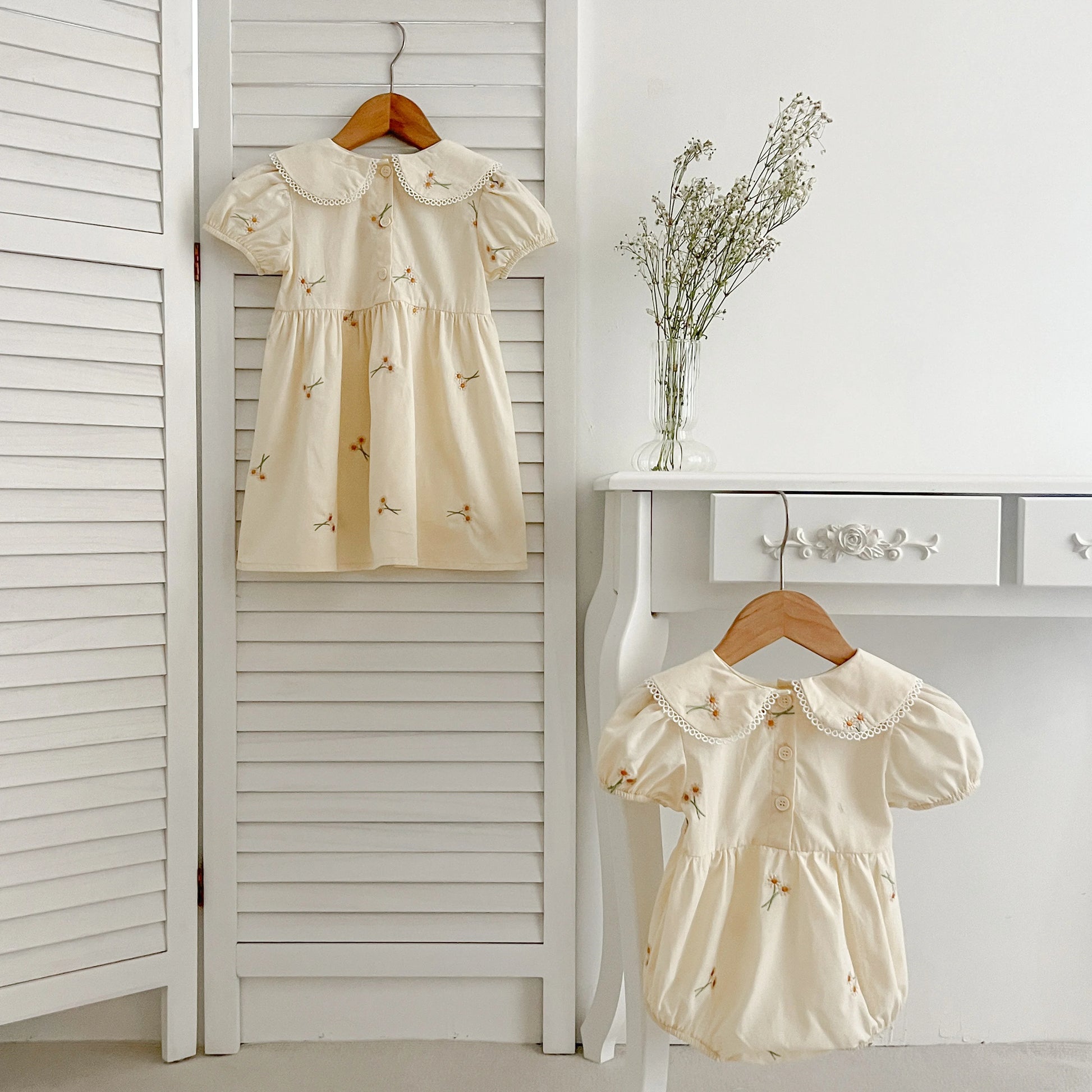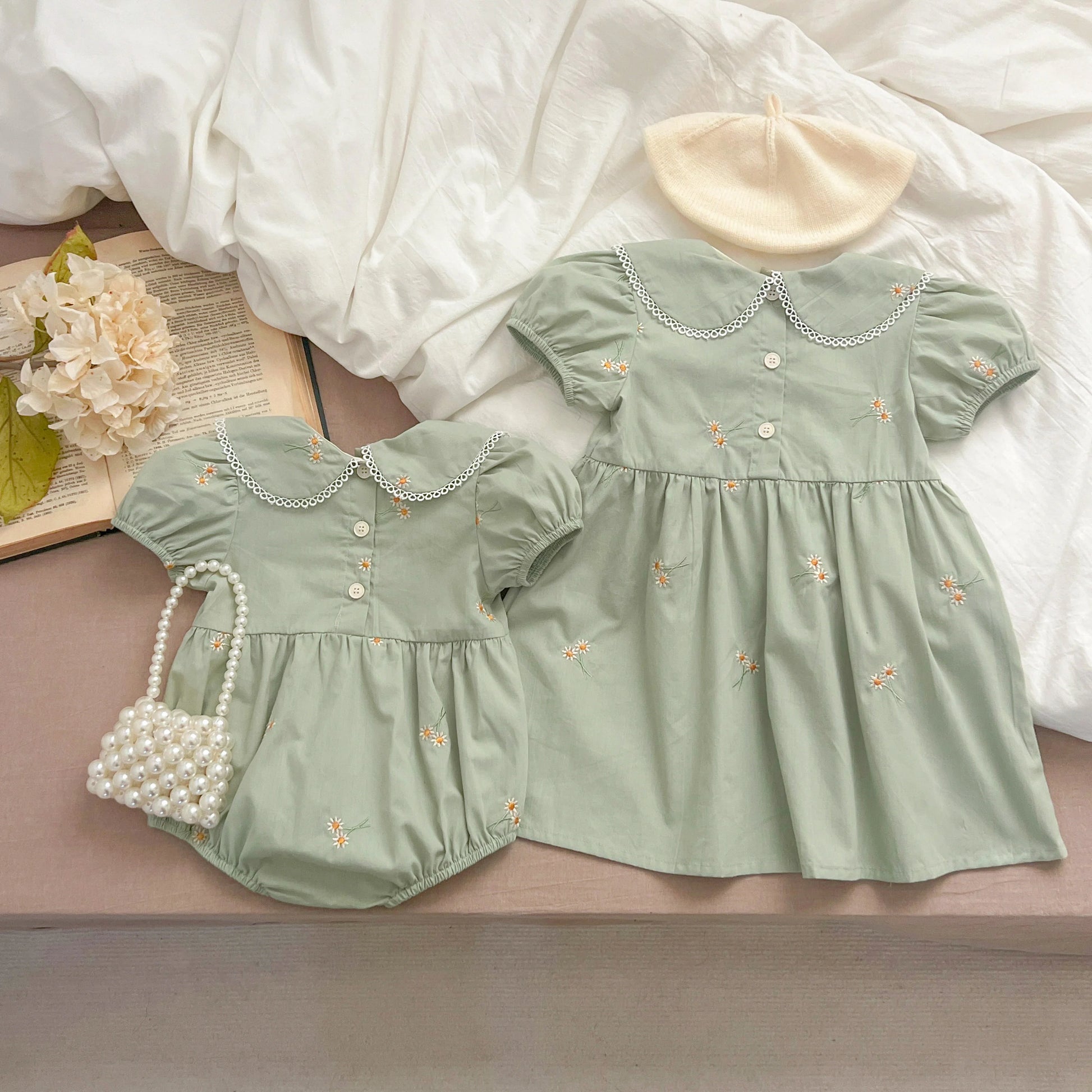 Infant Baby Girls Lace Collar Dress Rompers Sisters Clothes Kids Girls Embroider Flower Princess Dress Family Clothes Rompers